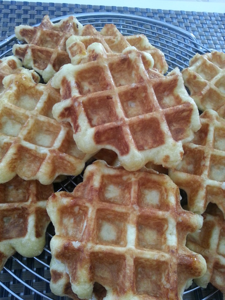 Déposer l’équivalent d’une cuillère à soupe au centre des plaques bien chaudes et laisser cuire 1min environ. Les gaufres sont cuites dès qu’elles sont bien dorées.